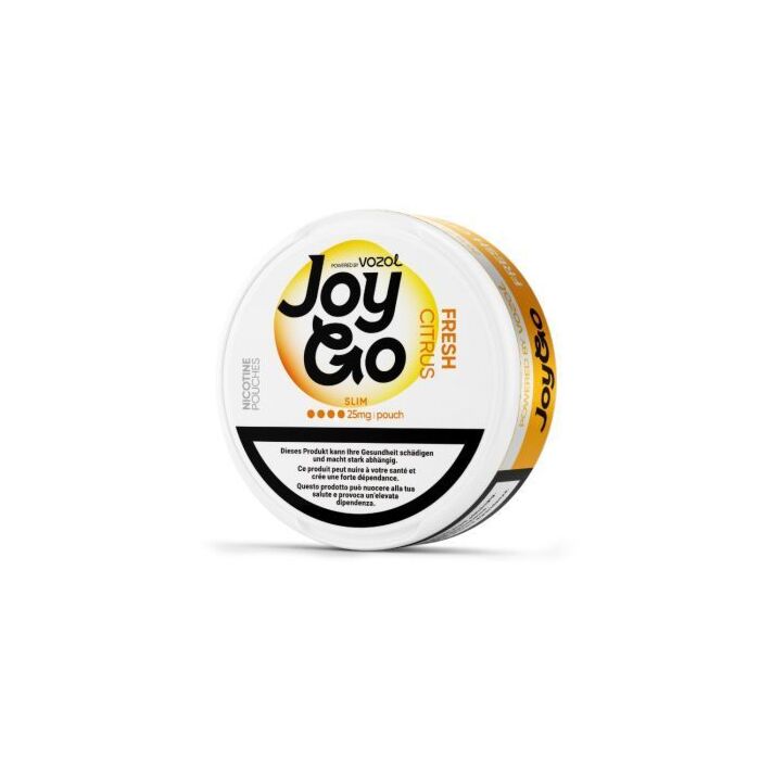 Mit Vozol JoyGo Fresh Citrus 25mg genießt du den belebenden Geschmack spritziger Zitrone, kombiniert mit einer extrem starken Nikotindosis von 25 mg/g. Die super schlanken Beutel sind diskret, praktisch und perfekt für unterwegs. Jede Dose enthält 20 Pouches, die dir intensiven Frischegenuss und maximale Stärke liefern. Erfrischend, kraftvoll und ideal für alle, die den besonderen Kick suchen!