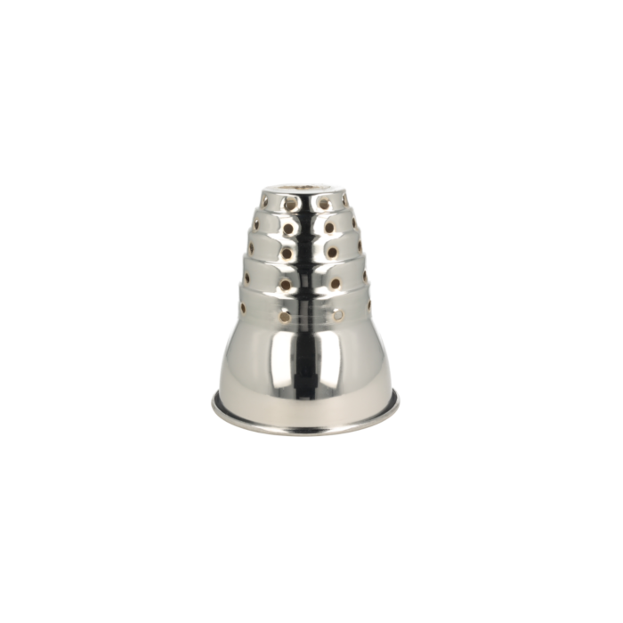Mit einer Höhe von 15 cm und einem Durchmesser von 12,5 cm passt er optimal auf verschiedene Shisha-Köpfe und schützt die Glut vor störendem Wind. Hergestellt von Aladin Shishas, sorgt das robuste Metall für Langlebigkeit und zuverlässigen Schutz. Durch seine stabile Konstruktion wird die Hitze gleichmäßig verteilt, was das Shisha-Erlebnis verbessert. Das Design kann leicht abweichen, was jedes Stück einzigartig macht.
